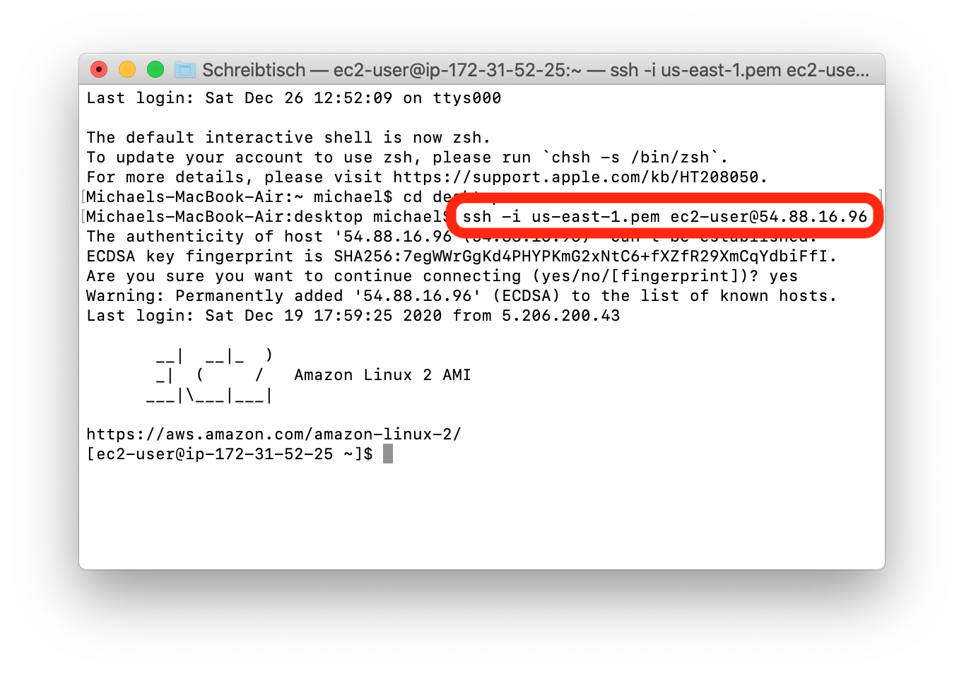 Launch the Playwright in Lambda EC2 virtual machine, and connect to the terminal via SSH to log in as 'ec2-user'. Refer to the chapter 'Connect to your VM via SSH' for guidance.