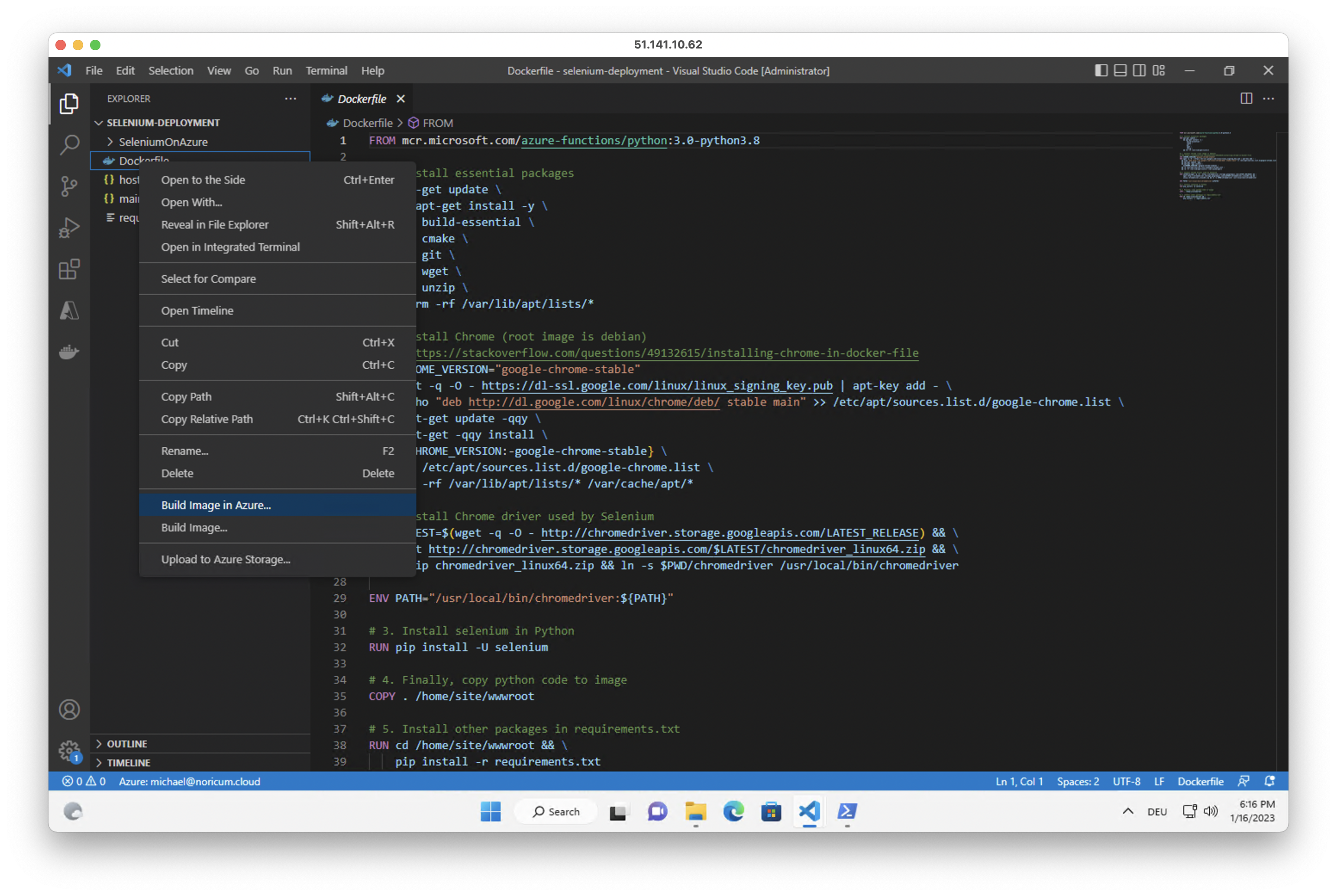 Deploy Selenium on Azure Functions